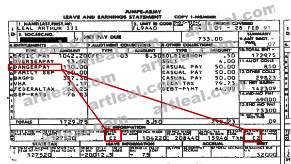 Started receiving "Imminent Danger Pay in January 1991 when Desert Storm began, Federal and State Tax designation Combat Zone (CZ)